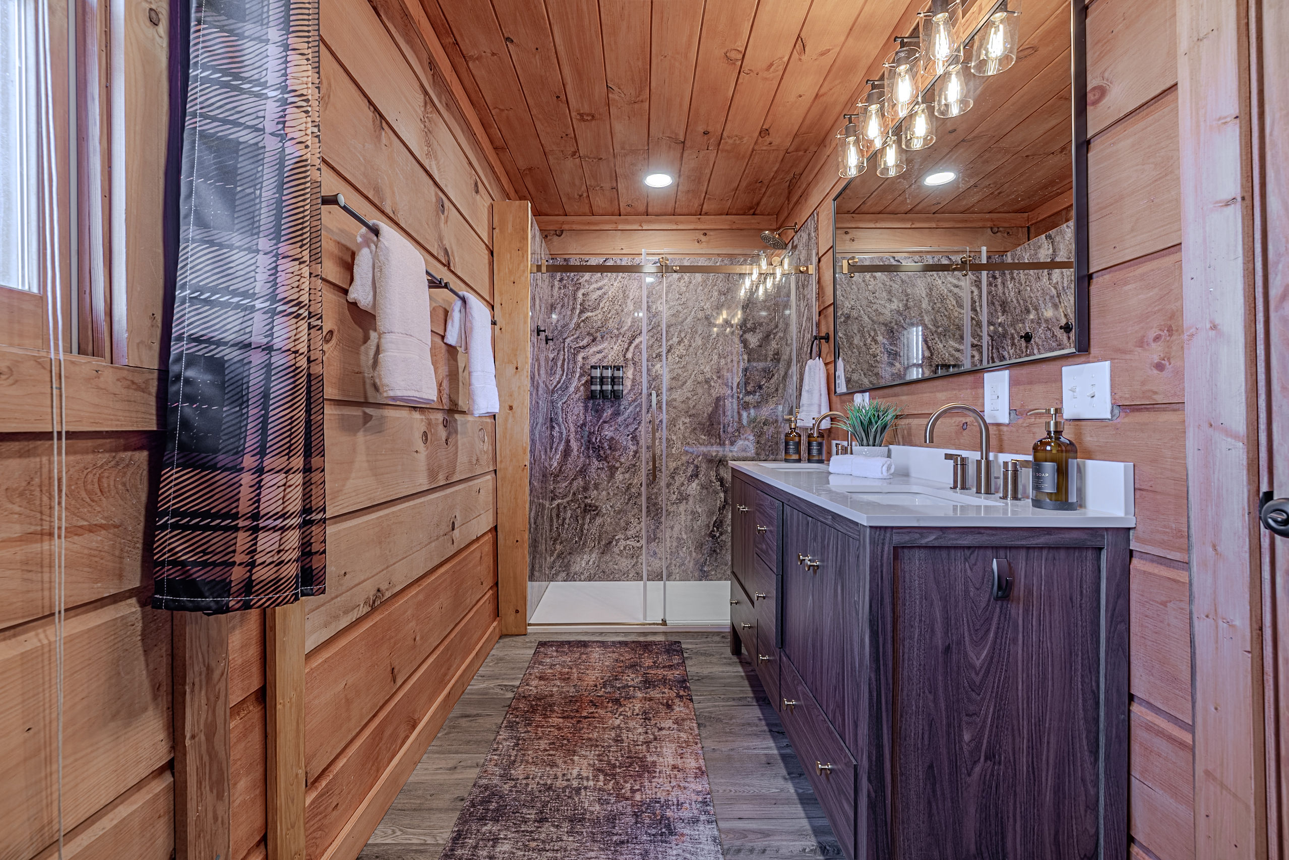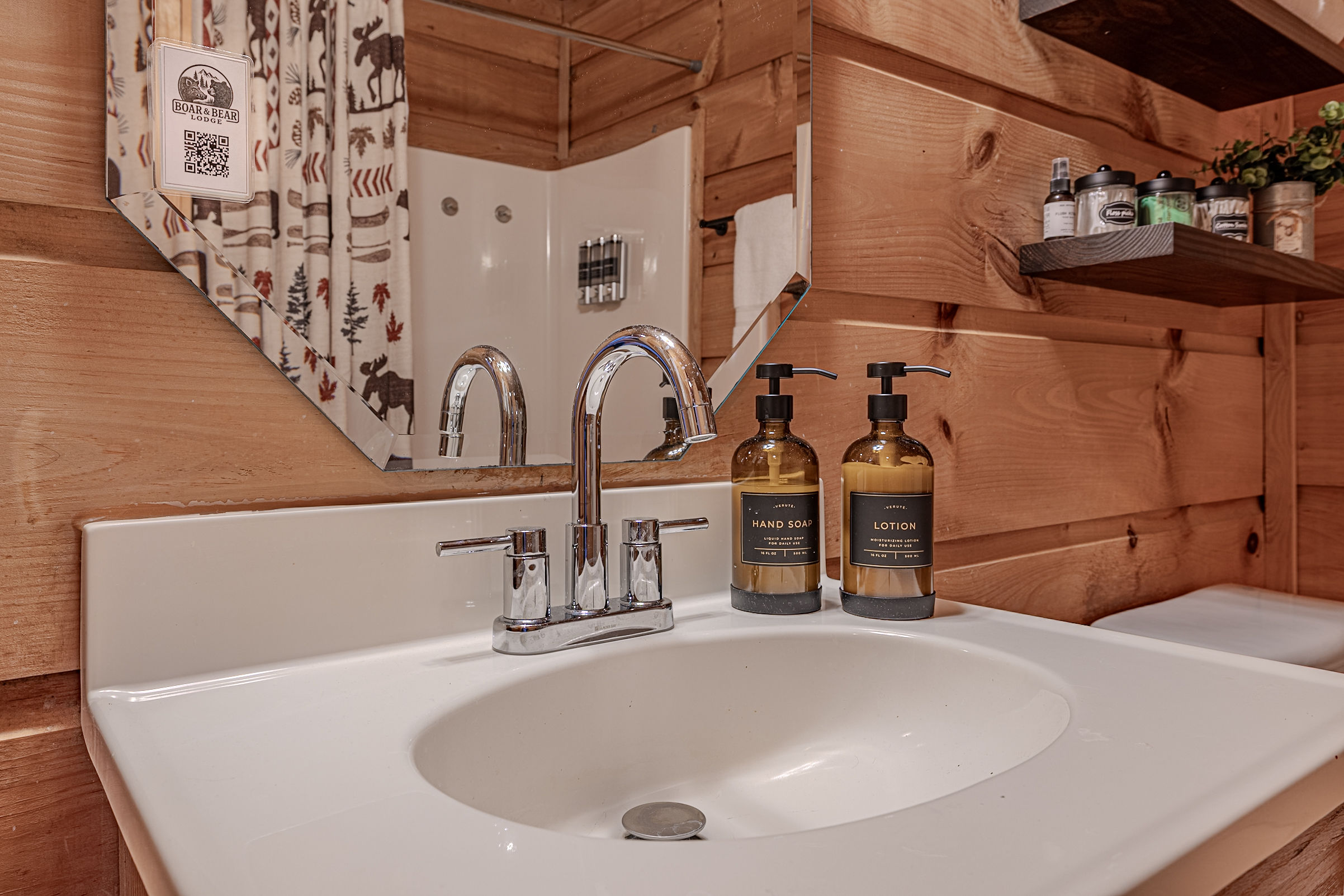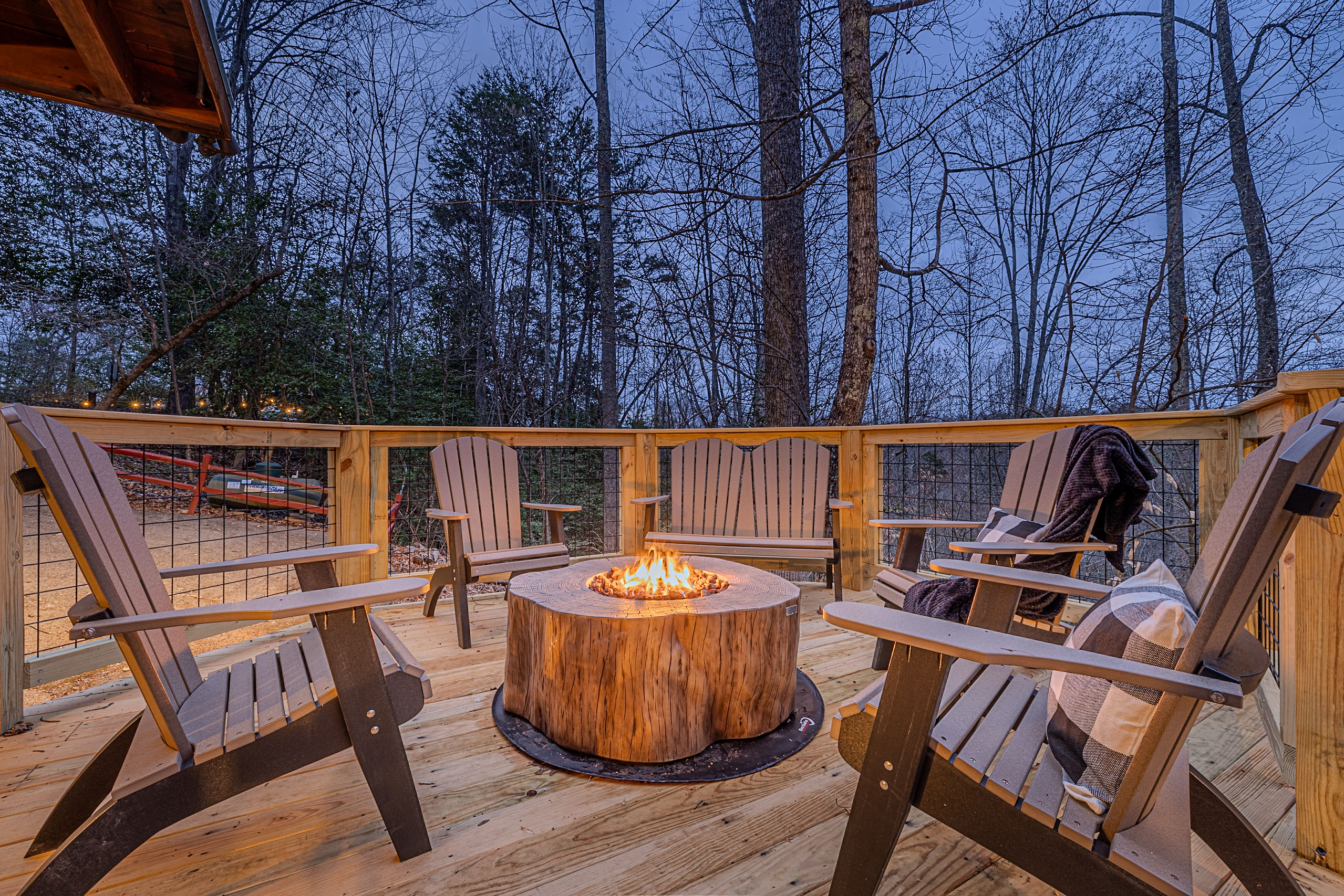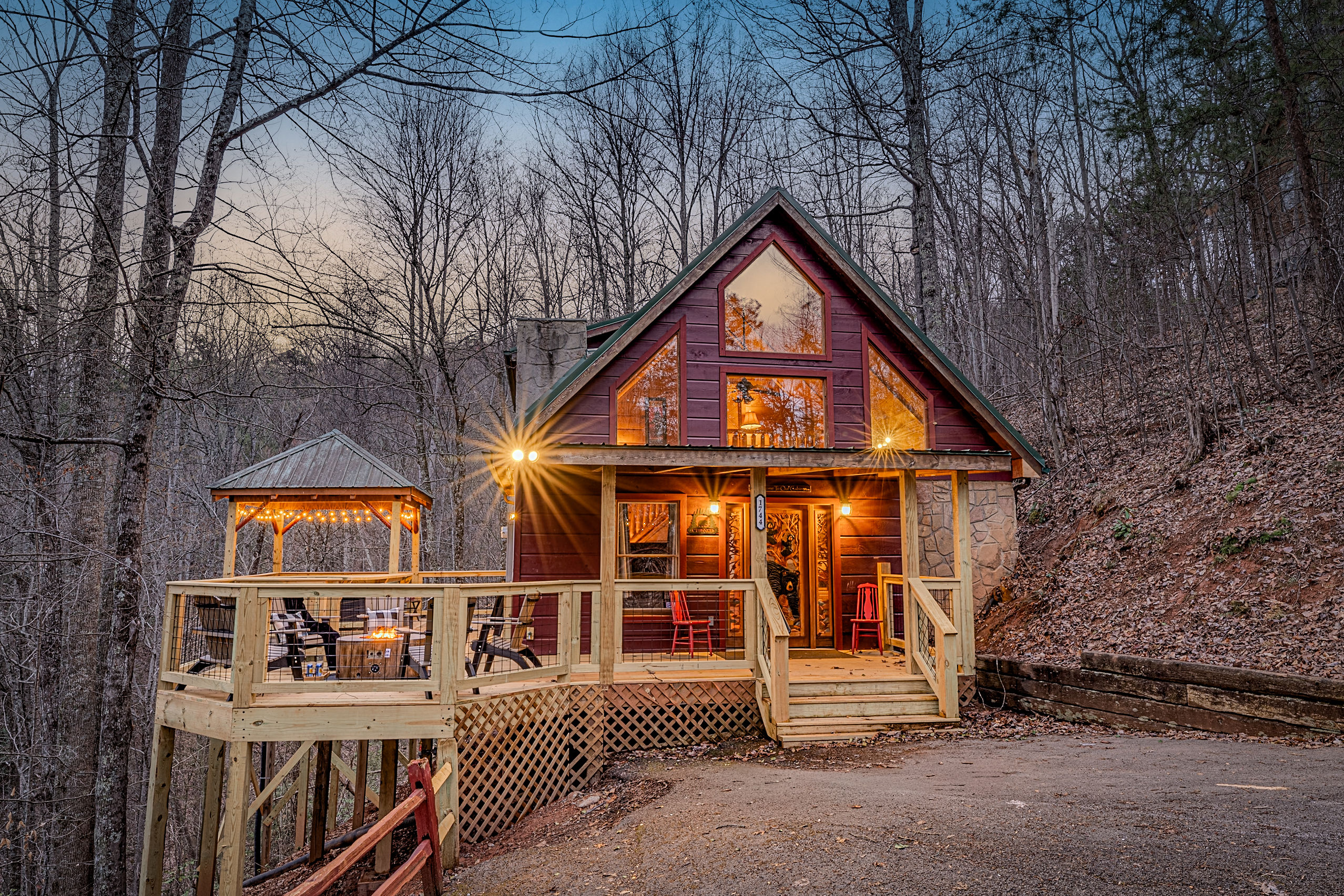 Welcome to Boar & Bear Lodge a thoughtfully designed 2-bedroom, 2-bath cabin that blends comfort, entertainment, and a peaceful mountain setting with access to Dollywood and the Parkway. The cabin is laid out across two levels, offering both space and privacy. Upstairs, the master bedroom features a king bed, TV, and a fold-out sleeper ottoman. The downstairs bedroom includes a queen bed and its own TV, providing a comfortable retreat for guests. The main living area offers a full-sized sleeper sofa making it perfect for families or flexible group stays, complete with a firebox, Smart TV, and high-speed WiFi. The fully stocked kitchen and coffee bar make it easy to cook meals or start your morning right with a Keurig, drip coffee maker, French press, and complimentary starter supplies. For fun and entertainment, enjoy the game area with foosball table and retro arcade machines—perfect for unwinding after a day of exploring. Step outside onto the private deck and take in the peaceful wooded surroundings. Relax in the hot tub under ambient lighting, or gather around the propane fire pit for a laid-back evening. The deck also features a bar rail—ideal for morning coffee or evening drinks. While there are neighboring cabins in the area, the layout and wooded setting provide a private, tucked-away feel, allowing you to enjoy the quiet without being completely remote. Additional conveniences include washer/dryer, workspace, keyless entry, and dedicated parking to make your stay as easy and comfortable as possible.
